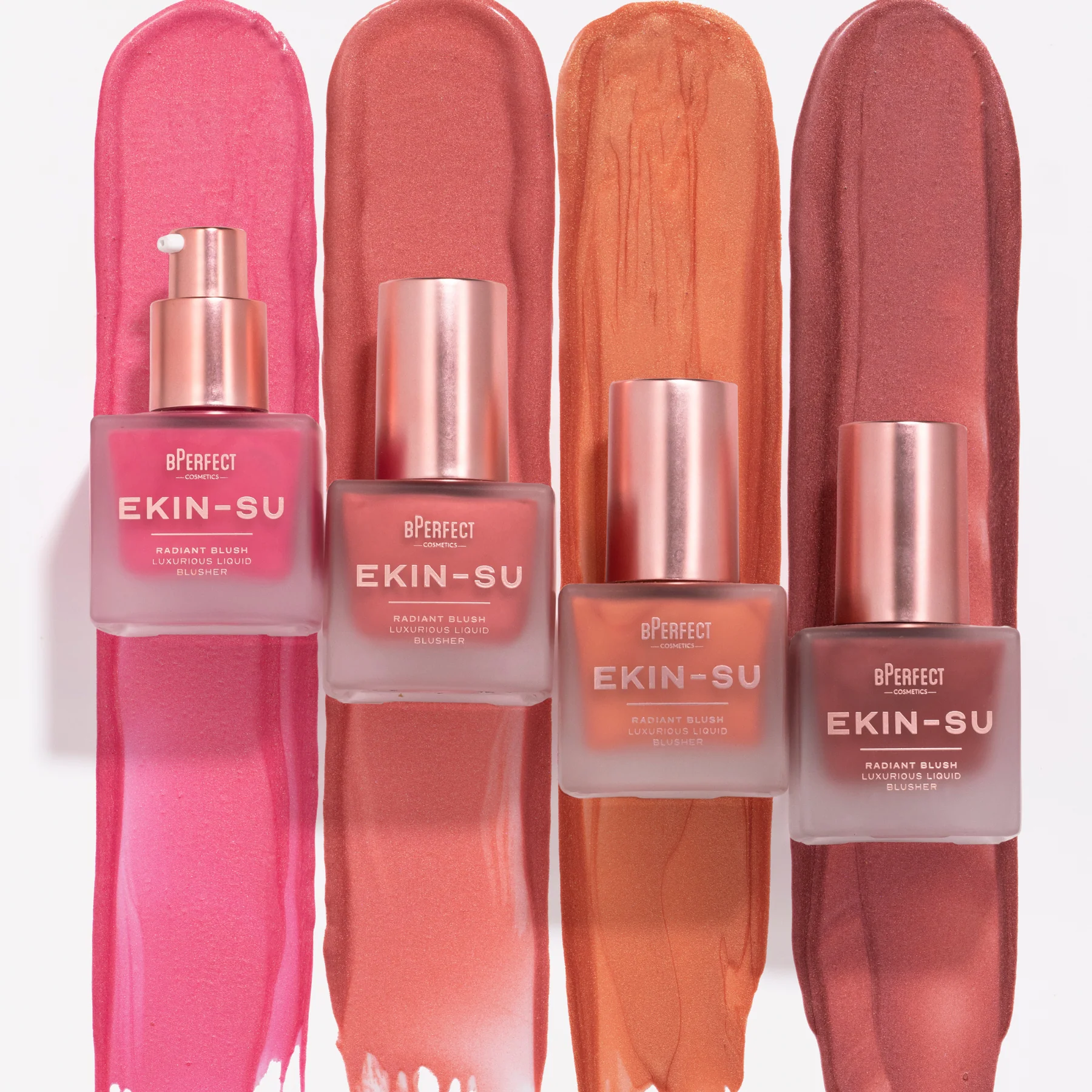 Customise your glow with the BPerfect x Ekin-Su - Radiant Blush in Turkish Delight. Buildable liquid blusher with light reflecting golden pigments that melts onto the skin for a sunkissed flush of colour.